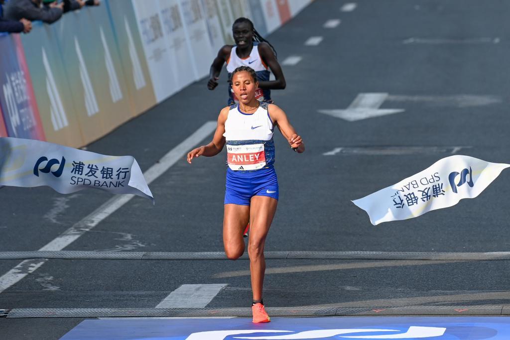 2026年3月15日,上海东方体育中心,女子组的第一名则花落来自埃塞俄比亚的阿斯马雷奇·安利,成绩是1:07:01。澎湃新闻记者 朱伟辉 图